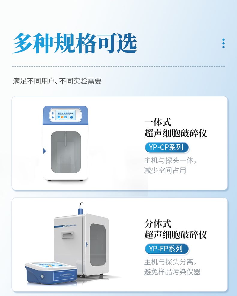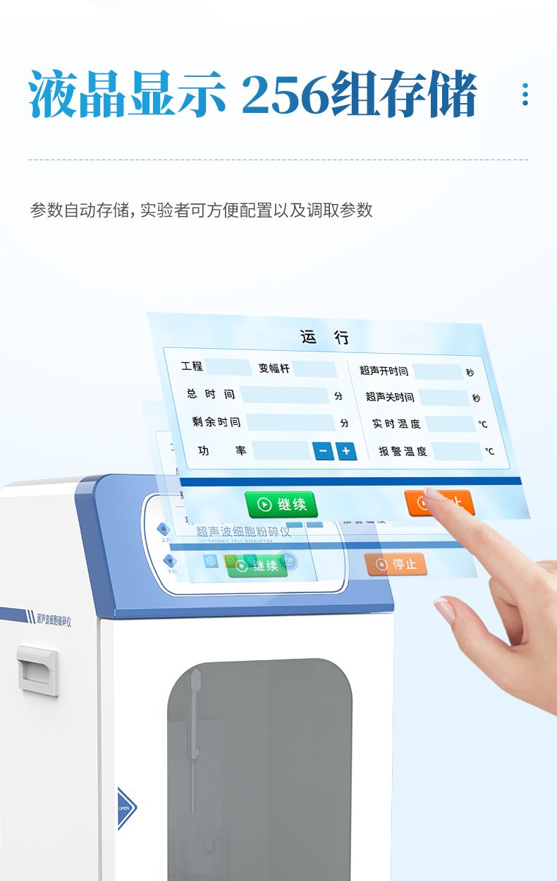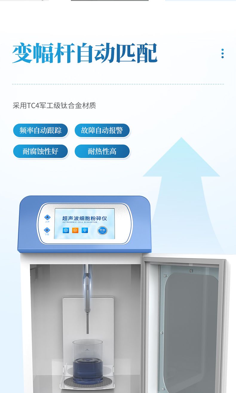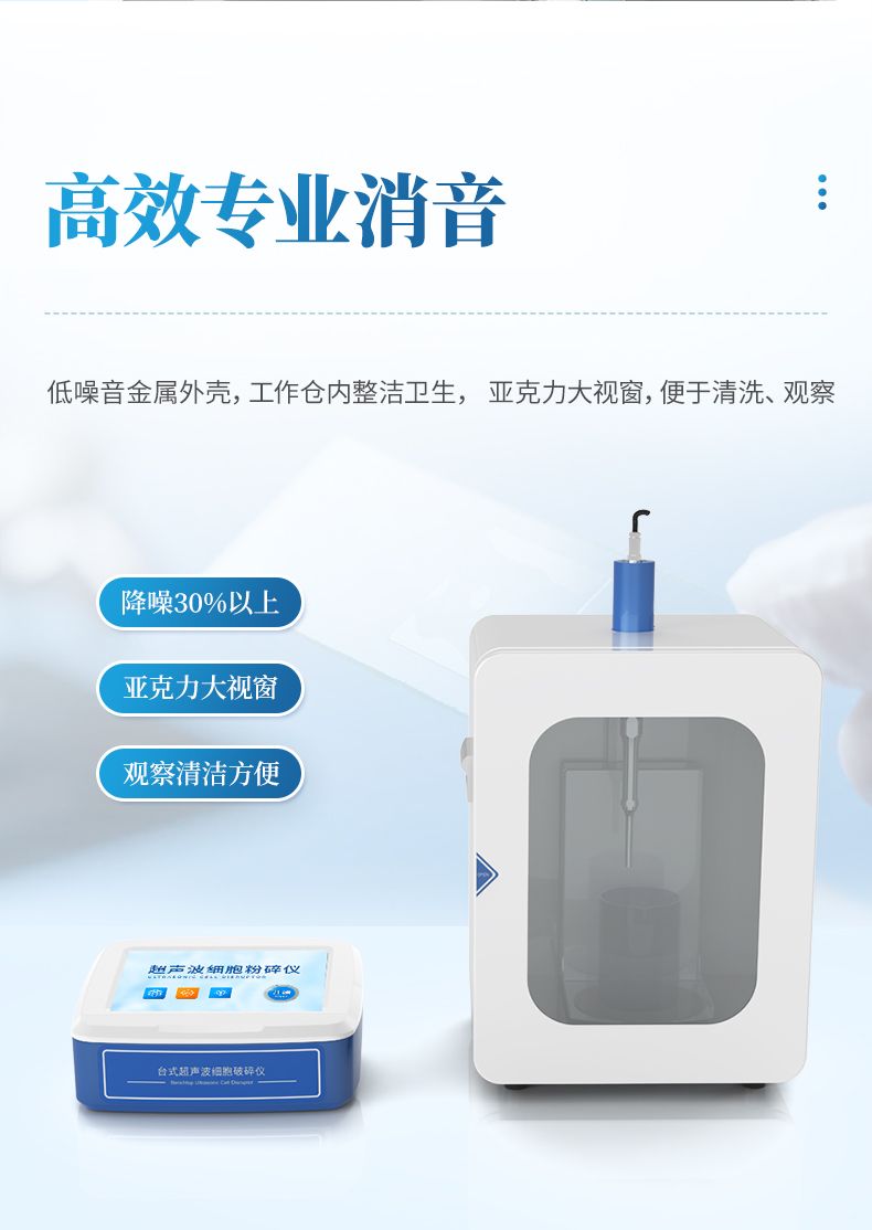 自研自產的超聲波細胞破碎儀,功能齊全、外觀新穎、性能可靠。儀器采用大屏液晶顯示;中央微機集中控制,超聲輸出、間隙時間、超聲功率,樣品溫度監測顯示,頻率自動跟蹤,故障自動報警等功能。適用于生物化學、微生物學、藥物化學、表面化學、物理學、動物學、農學、醫學、制藥等領域的教學、科研及生產。