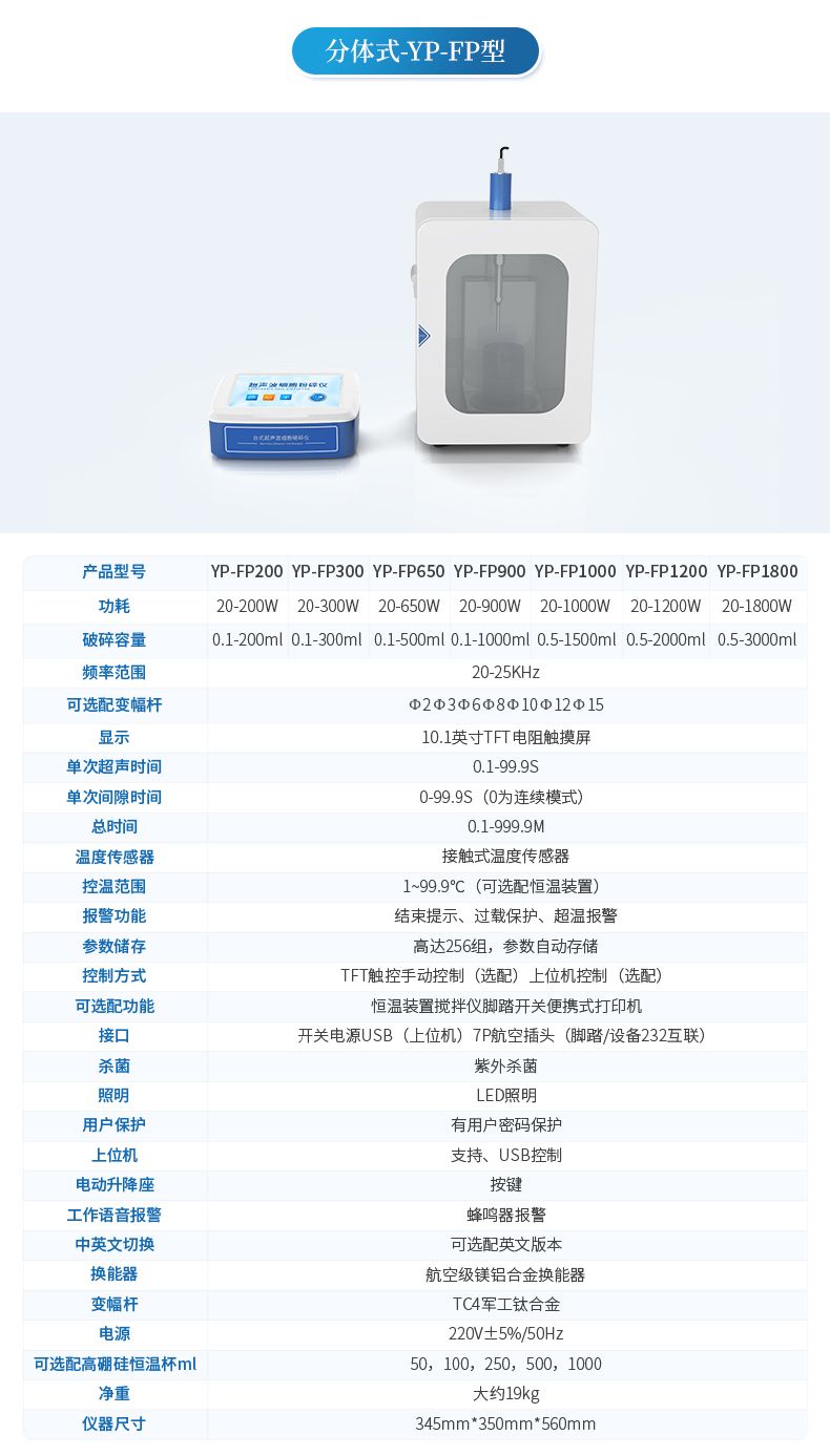 4.破碎容量:0.1--500ml(需選配相應的變幅桿)