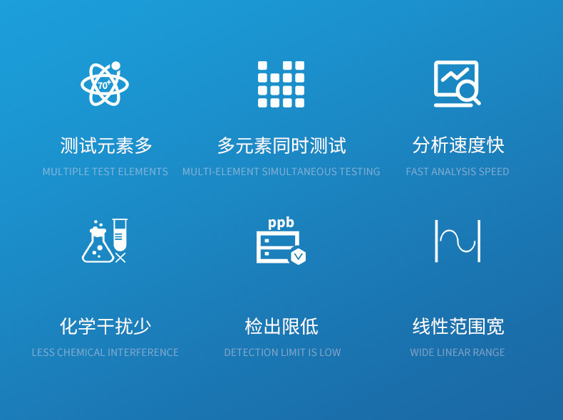 元素檢出限(μg/L):大部分元素1ppb-10ppb