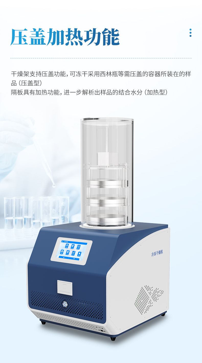(3) 干燥架支持壓蓋功能,可凍干采用西林瓶等需壓蓋的容器所裝在的樣品(壓蓋型)。