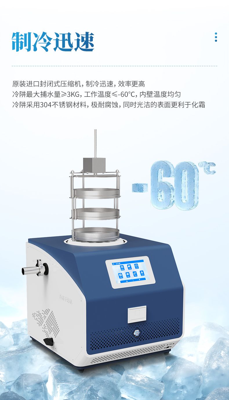 3. ?化工行業(yè)?:凍干機在化工行業(yè)中用于生產催化劑、化學原料、顏料等產品的生產和保存。通過去除水分和揮發(fā)性成分,保證產品的質量和純度。