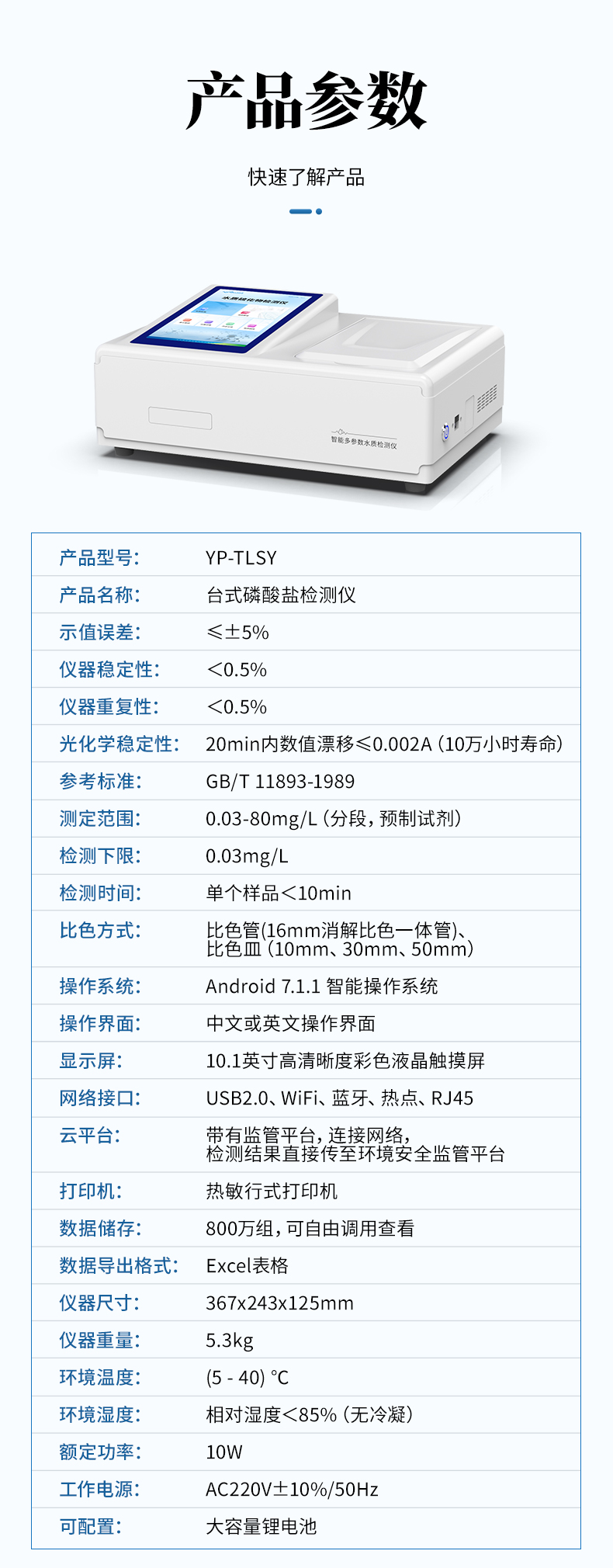 水質磷酸鹽檢測儀是一款適用于工業污水、水產養殖、河流監測、游泳場館等領域的檢測儀,配合快速顯色檢測試劑,可“快速、簡單、準確、穩定”進行測量,擁有精美的外觀造型,簡單的操作界面,準確的檢測系統,幫助用戶獲得精細的數據,可更準確、有效的分析水體狀況,提前預防養殖風險,及時避免損失。