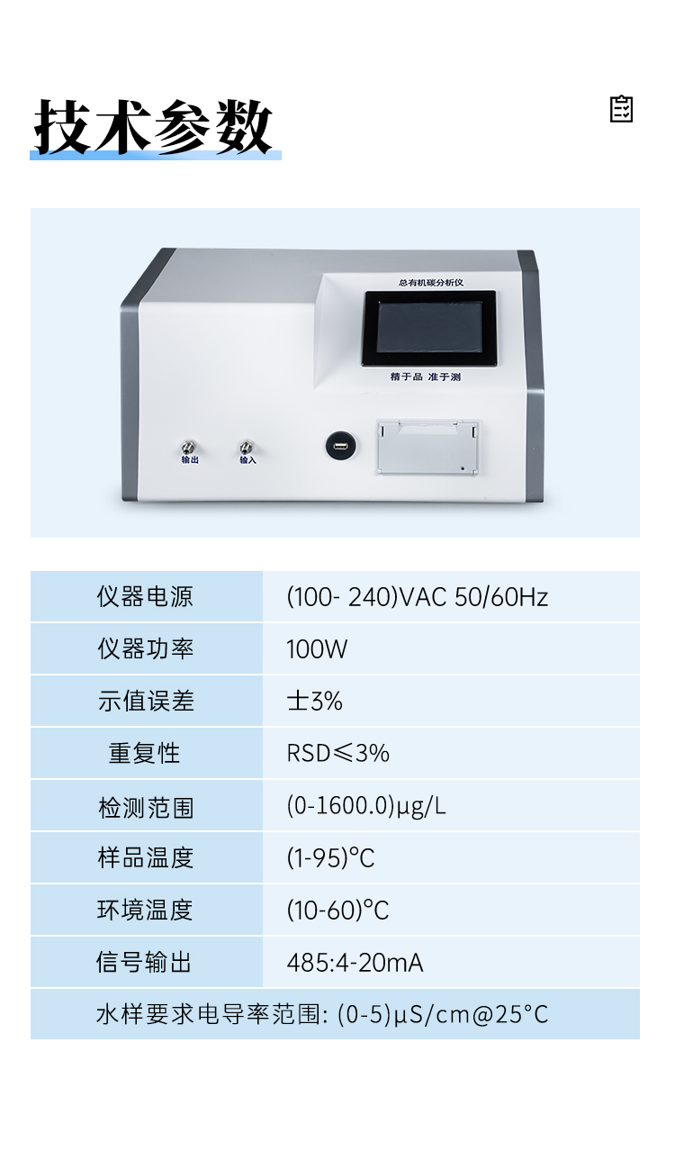 1、檢測(cè)制藥工業(yè)中純化水、注射用水和高純水中總有機(jī)碳的濃度;