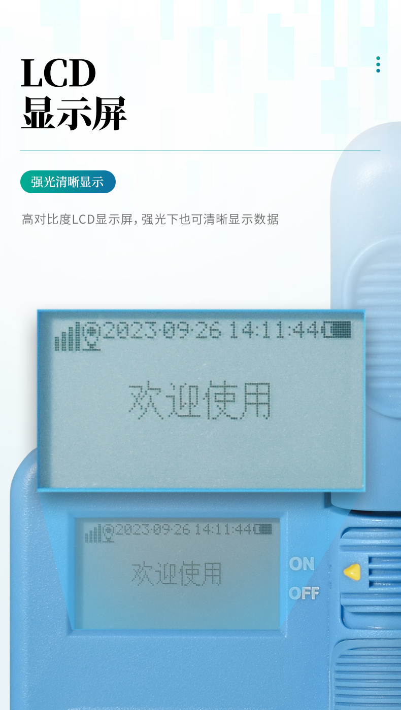 10.高對比度LCD顯示屏,強光下也可清晰顯示數據