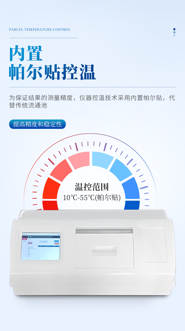 2:為保證結(jié)果的測(cè)量精度,儀器控溫技術(shù)采用內(nèi)置帕爾貼,代替?zhèn)鹘y(tǒng)流通池;