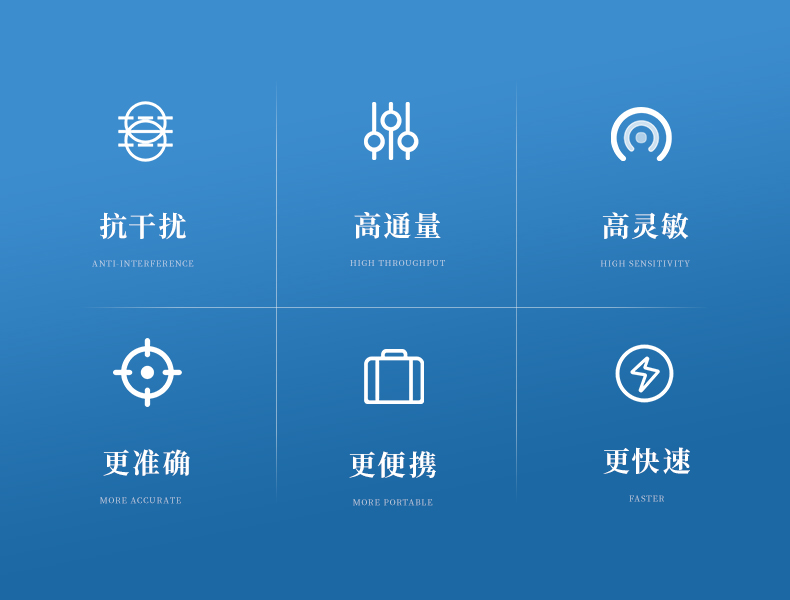 抗干擾 — 使用新型量子點熒光探針作為示蹤物,信號不受外界的背景干擾。