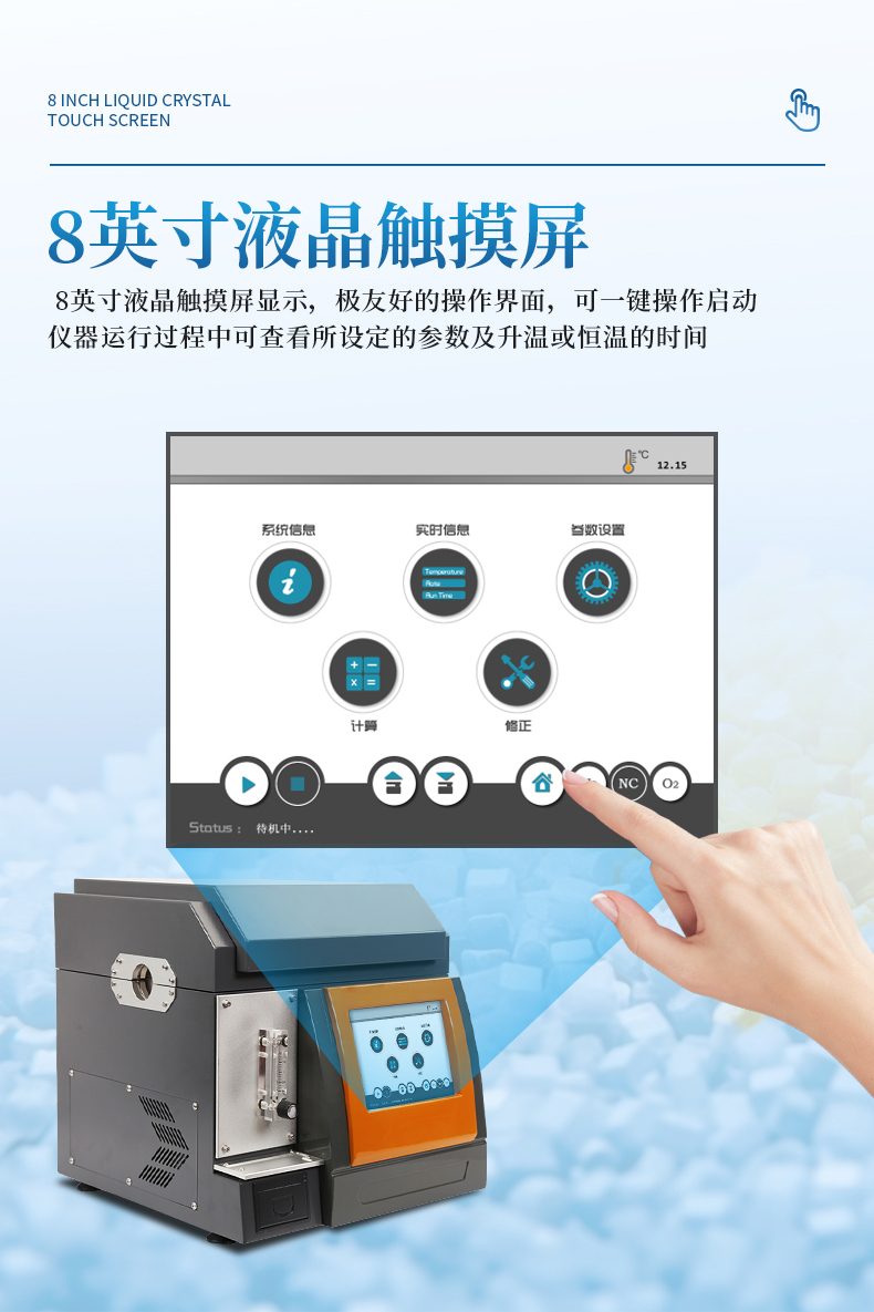 4. 8寸液晶觸摸屏顯示,極友好的操作界面,可一鍵操作啟動(dòng)