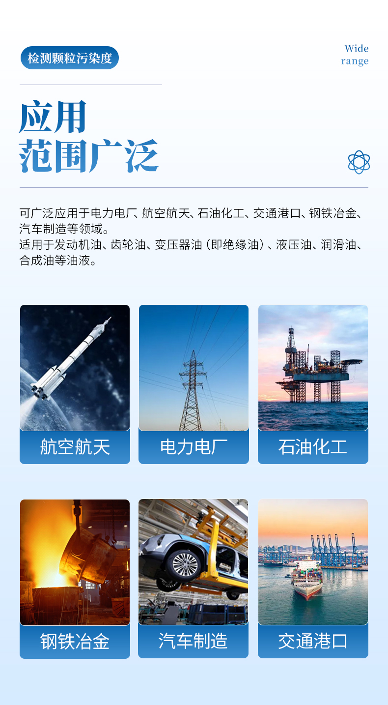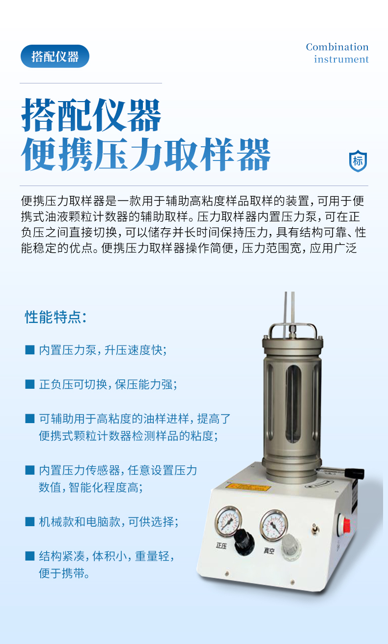 l適用于實驗室或現場檢測,也可選配減壓裝置用于在線高壓測量,實時監測用油系統中的顆粒污染度