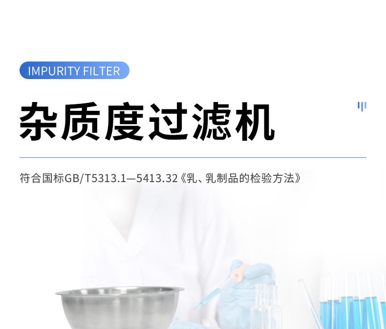 YP-ZZ雜質度過濾機是山東優云譜光電科技有限公司按照國家標準GB/T5313.1—5413.32《乳、乳制品的檢驗方法》中關于雜質度的測定而專門制造。此儀器是在第一代雜質過濾機ZA-GB1(ZA-GB1依據GB5413.30-1985),第二代雜質過濾機ZA-GB2(ZA-GB2依據GB5413.30-1997)的基礎上依據GB5413.30-2016研發生產的最近第三代雜質度過濾機。HL-GB2雜質度過濾機避免了機械式ZA-GB1過濾機皮帶維護麻煩,耗材貴的麻煩。也在ZA-GB2基礎上改進電機,并按新標準GB5413.30-2016進行改動,更好的滿足了GB5413.30-2016要求,更耐用,免維護,并配。杜絕了1代產品惱人的噪音使用更加持久耐用,并配配了全部使用配件,更全,更方便使用。